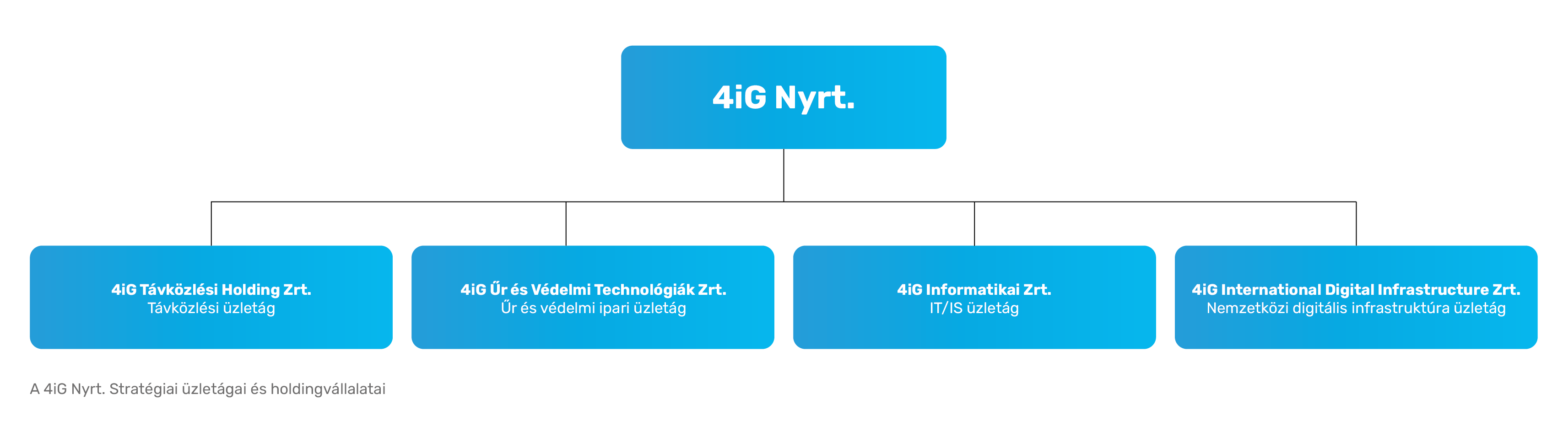 - A 4iG Csoport négy üzletági szakholdingja önálló operatív irányítást kap, közvetlenül támogatva a növekedési, nemzetközi terjeszkedési, valamint konszolidációs és hatékonysági céljaikat.